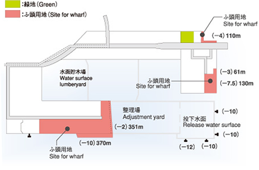 | Water surface timber storage yard | -1〜-2m | 21.2ha |